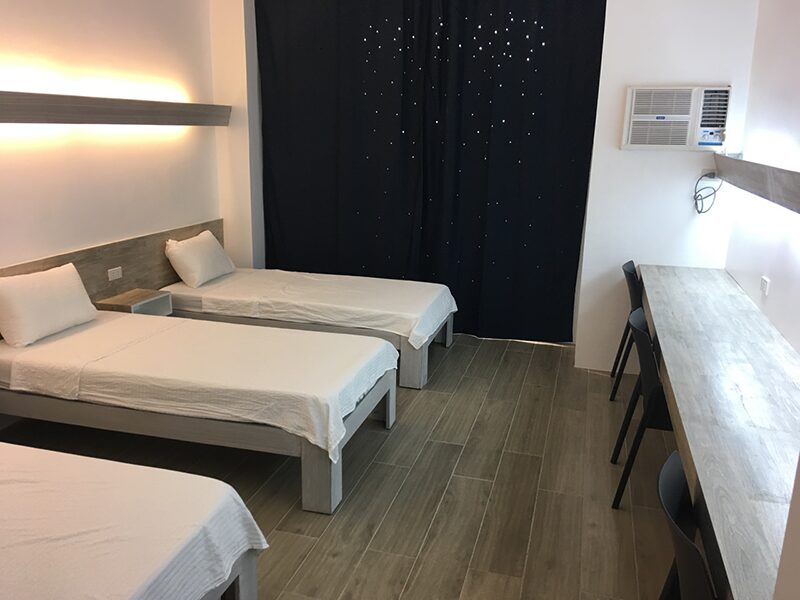 セブシティ郊外に位置する約350名規模のメインキャンパス。スパルタ・セミスパルタの2タイプから選択できます。